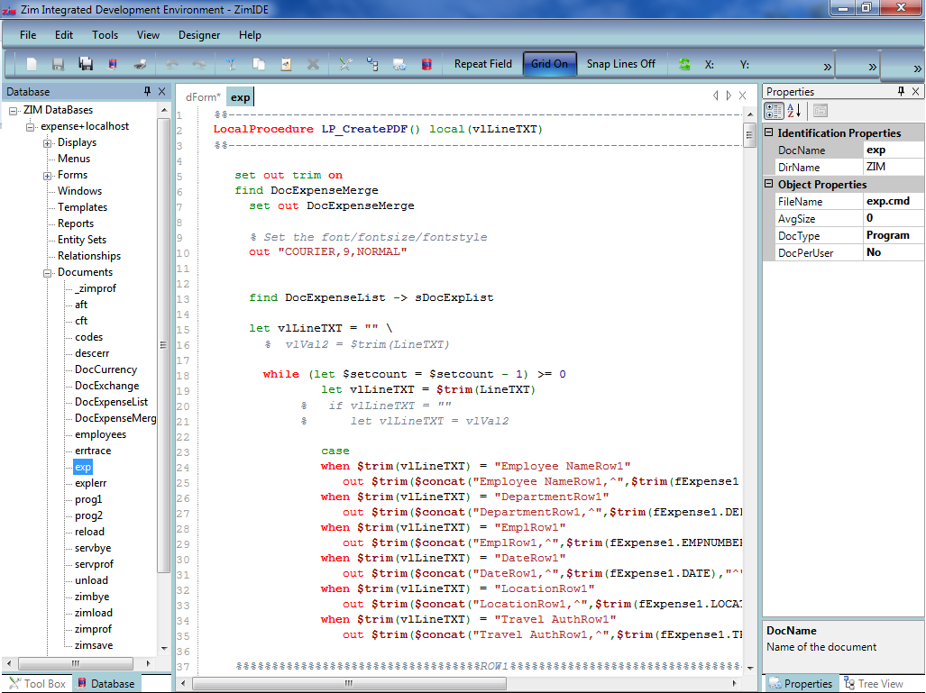 The Document Editor is where documents such as Zim programs, database parameters and configuration files are viewed and edited.